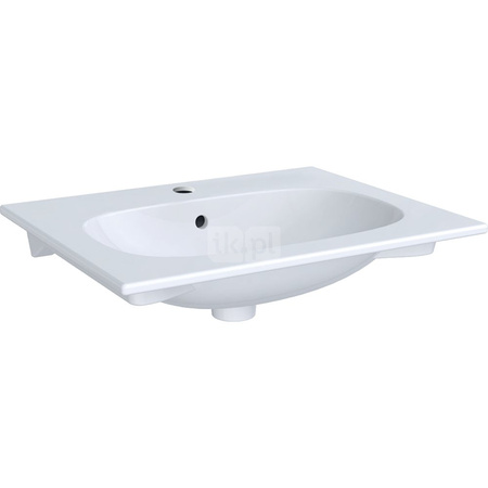 Umywalka GEBERIT Acanto prostokątna, biała / KeraTect, 600mm, otwór na baterię na środku, nakładany od góry, z odpływem przelewowym, półka od ściany