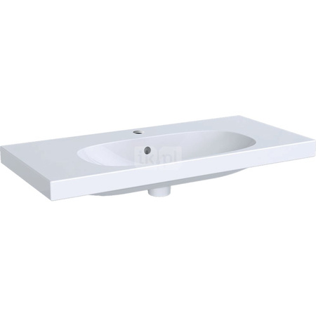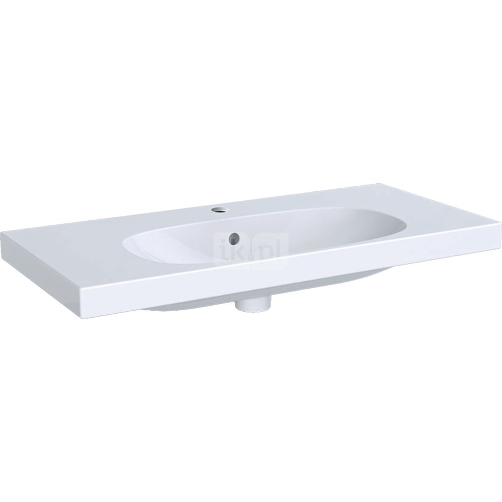 Umywalka GEBERIT Acanto prostokątna, biała / KeraTect, 900mm, otwór na baterię na środku, z odpływem przelewowym, półki z obu stron