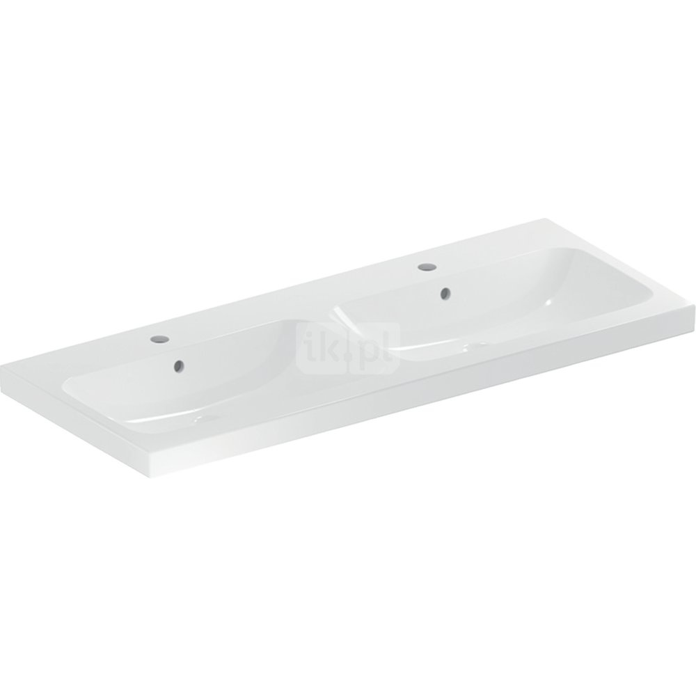 Umywalka GEBERIT iCon Light podwójna 2-stanowiskowa prostokątna, biała / KeraTect, 1200mm, otwór na baterię na środku, bez odpływu przelewowego, półka od ściany