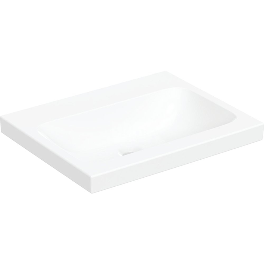 Umywalka GEBERIT iCon Light prostokątna, biała / KeraTect, 600mm, bez otworu na baterię, stawiana na blat, bez odpływu przelewowego, półka od ściany