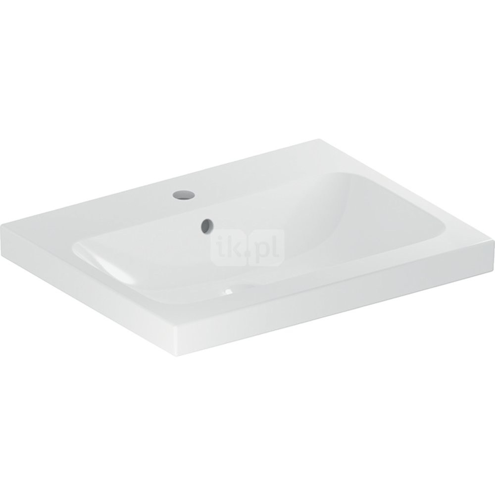 Umywalka GEBERIT iCon Light prostokątna, biała / KeraTect, 600mm, otwór na baterię na środku, z odpływem przelewowym, półka od ściany