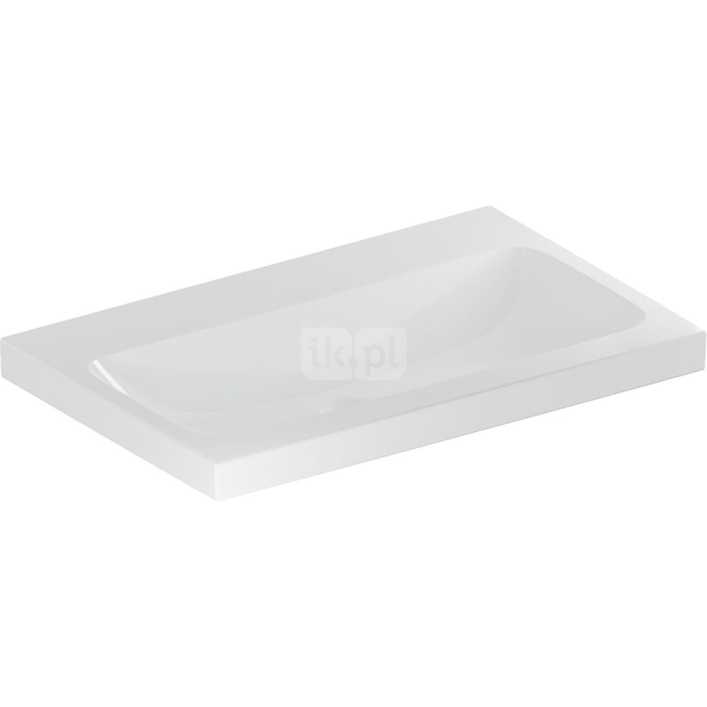 Umywalka GEBERIT iCon Light prostokątna, biała / KeraTect, 750mm, bez otworu na baterię, bez odpływu przelewowego, półka od ściany