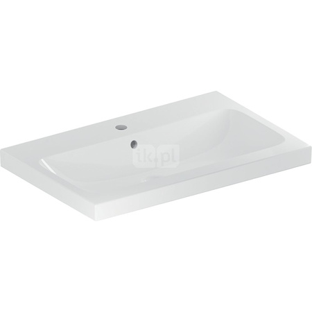 Umywalka GEBERIT iCon Light prostokątna, biała / KeraTect, 750mm, otwór na baterię na środku, z odpływem przelewowym, półka od ściany