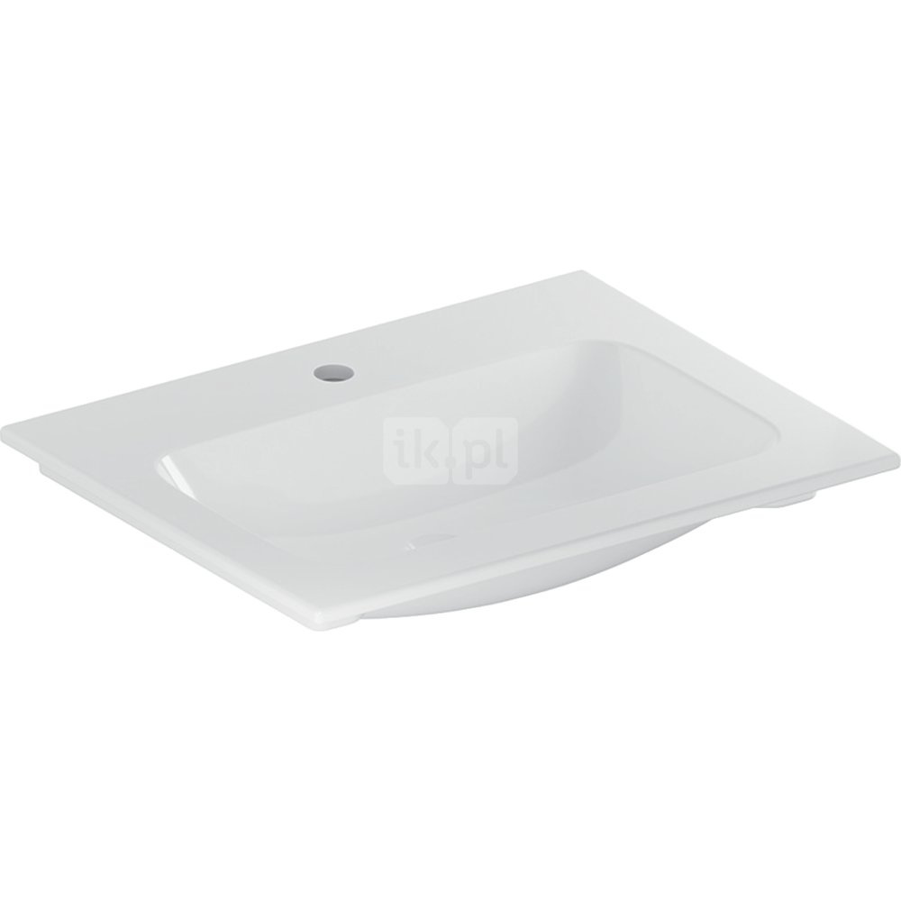 Umywalka GEBERIT iCon prostokątna, biała / KeraTect, 600mm, otwór na baterię na środku, nakładany od góry, bez odpływu przelewowego, półka od ściany