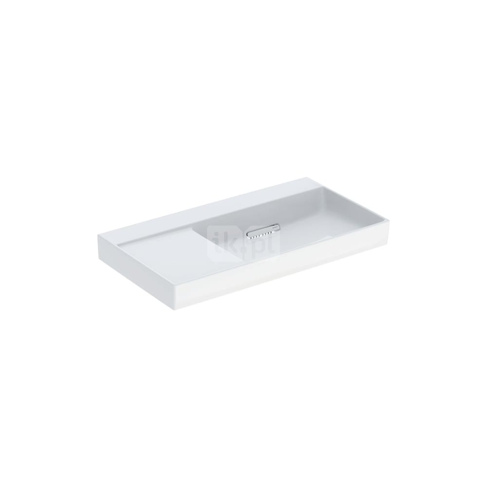 Umywalka GEBERIT ONE prostokątna, biała / KeraTect, 900mm, bez otworu na baterię, bez odpływu przelewowego, półka z lewej