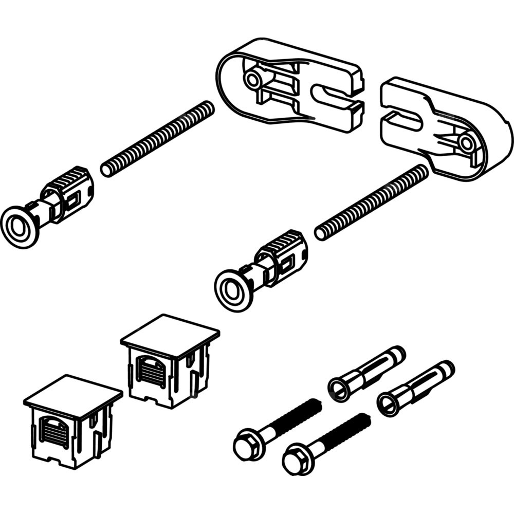 Prevista Dry-zestaw mocujący, przeznaczenie: mocowanie stelaży Prevista Dry, montaż pojedynczy bezpośrednio do ściany zintegrowane z systemem szyn Prevista Dry Plus, możliwe boczne wiercenie i mocowanie blisko ramy, przestawny na głębokość 120‑200 mm, zintegrowana powierzchnia montażowa do zabudowy.