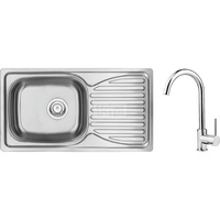 Deante Doppio Zestaw zlewozmywak stalowy 1-komorowy z ociekaczem + bateria zlewozmywakowa stojąca