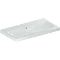 Umywalka GEBERIT iCon Light prostokątna, biała / KeraTect, 900mm, otwór na baterię na środku, z odpływem przelewowym, półka od ściany
