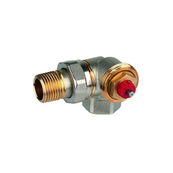 Zawór termostatyczny, narożny lewy, wkładka FX, 3/8", gwint wewnętrzny, ze złączką do grzejnika z uszczelnieniem metal-metal