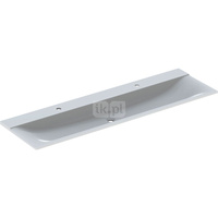 Umywalka GEBERIT Xeno2 2-stanowiskowa prostokątna, biała, 1400mm, bez otworu na baterię, nakładany od góry, bez odpływu przelewowego, półka od ściany